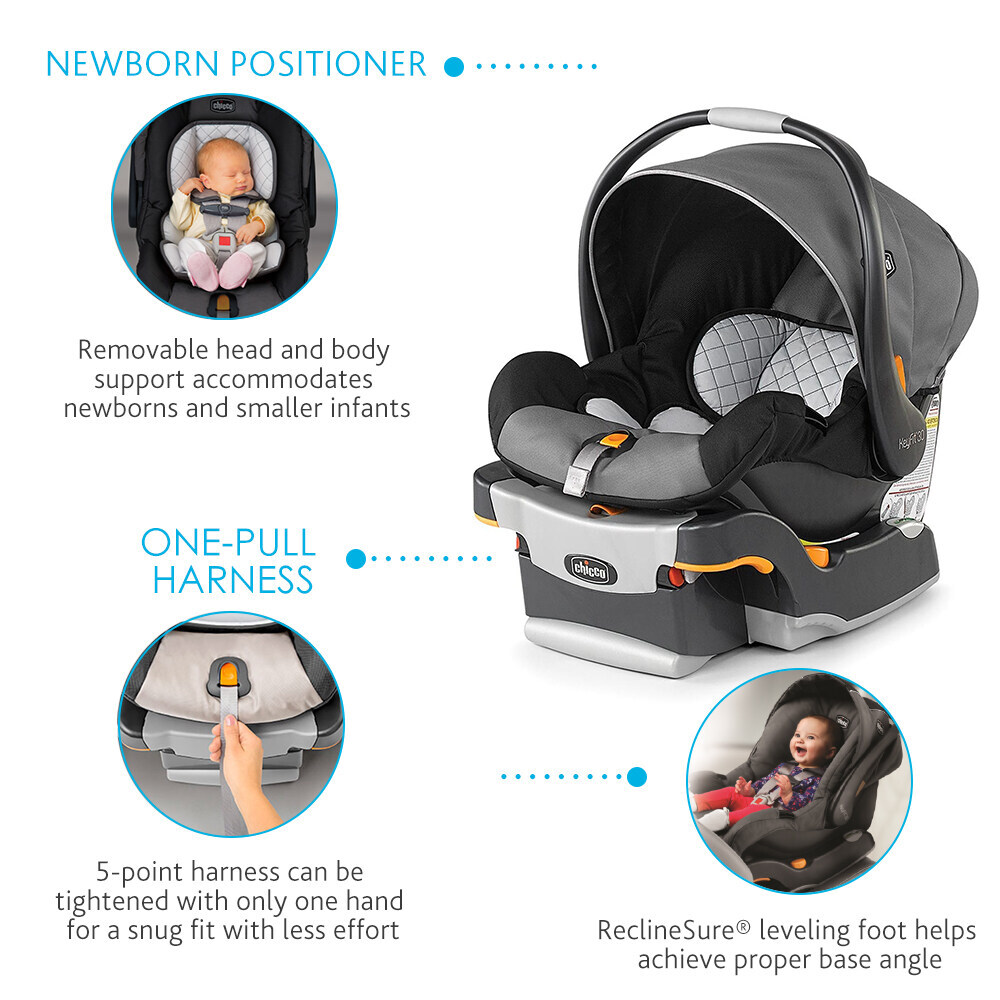 Mini Bravo Plus stroller is suitable from 6 months till 22.7kg. KeyFit 30 car seat is suitable from 2 till 13.5kg. It is homologated according to American Standard.
