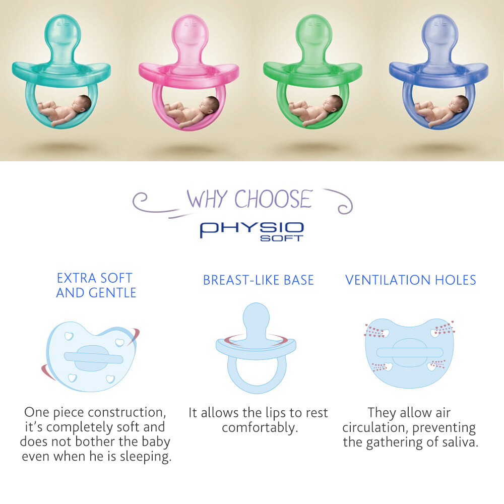 the exclusive finish on the teat makes Physio Soft extra velvety and more pleasant.