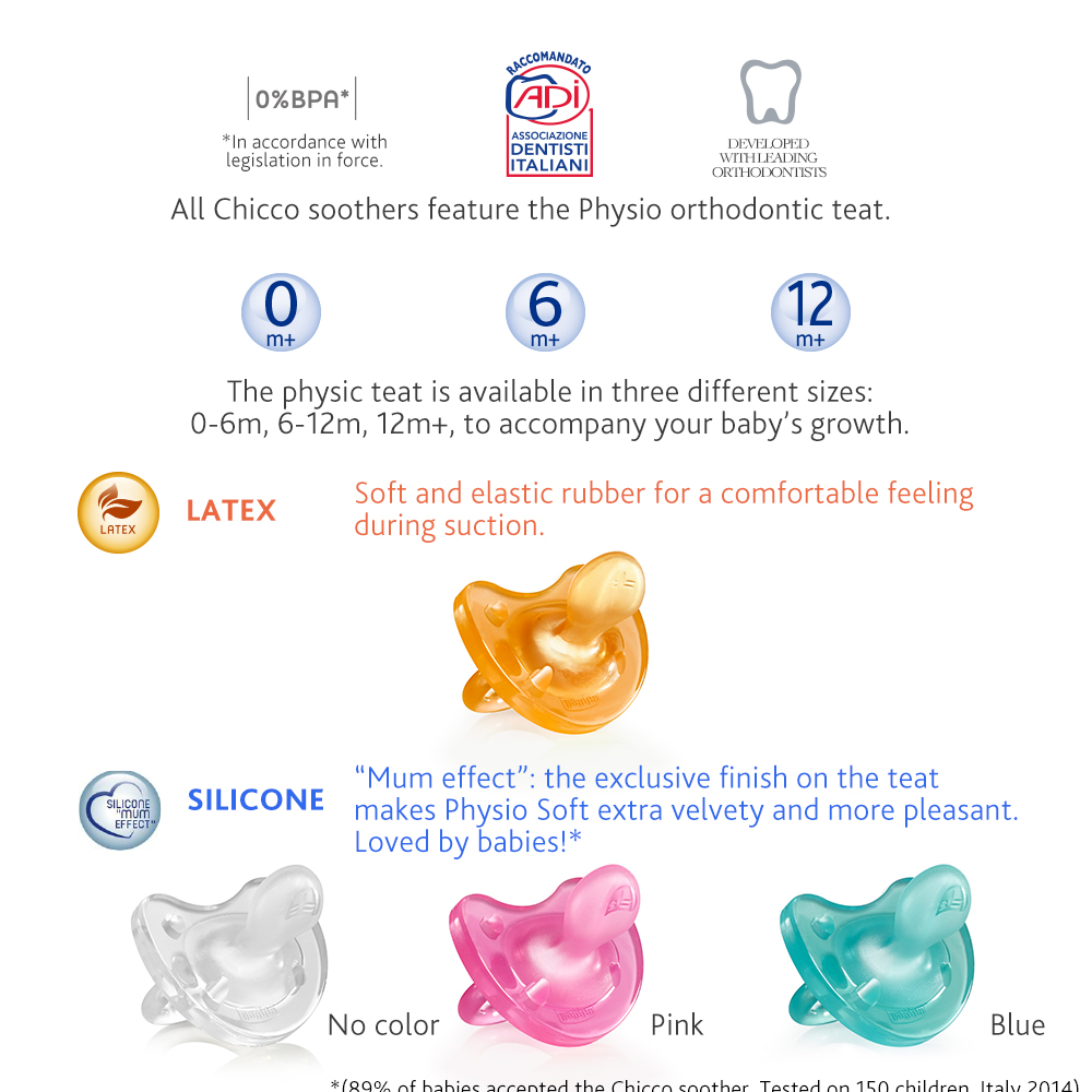 SILICONE “Mum effect”: the exclusive finish on the teat makes Physio Soft extra velvety and more pleasant.