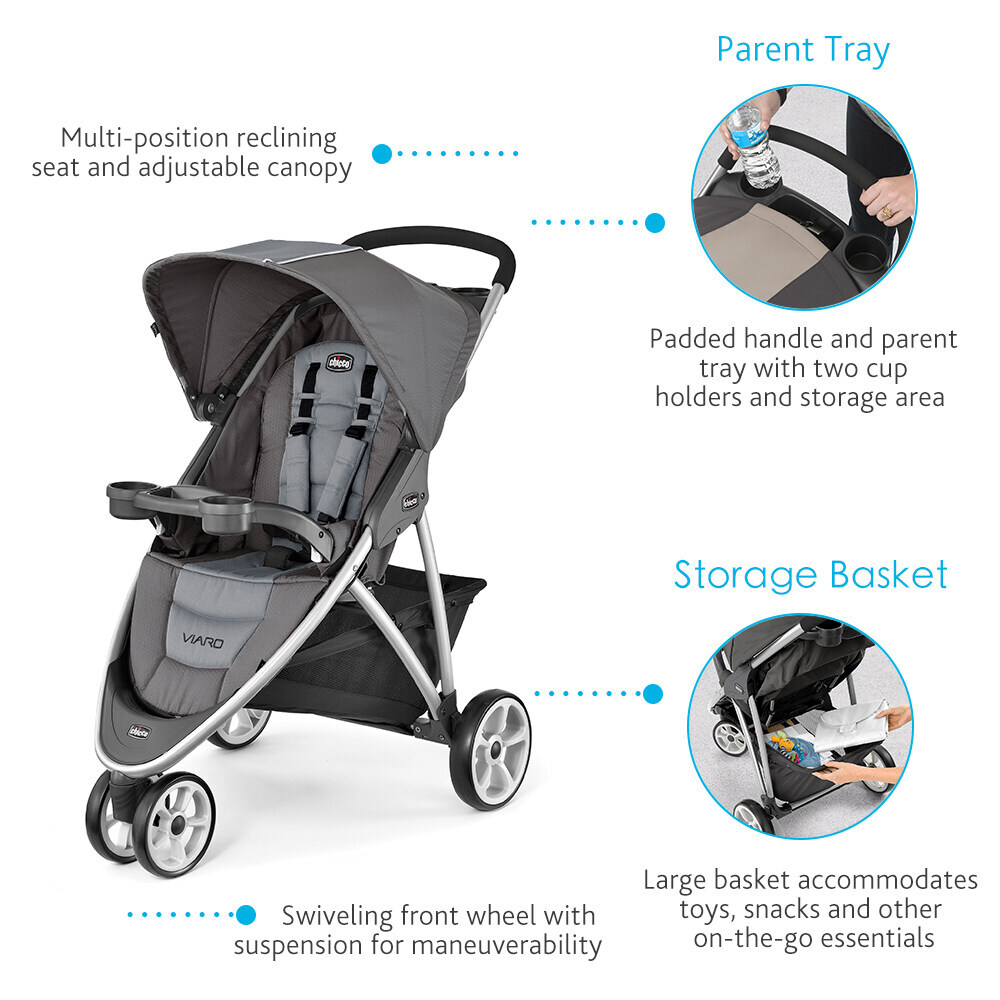Featuring an elegant three-wheel design and an aluminium frame, the Viaro stroller offers agile, sporty steering.